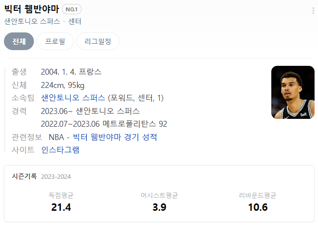 - Victor Wembanyama (샌안토니오 스퍼스) : 빅터 웸바야마는 슈퍼 루키로서, 최근 남자 농구계에서 가장 흥미로운 유망주입니다.