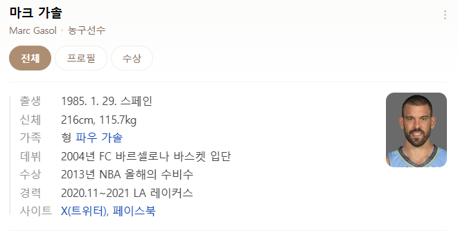 - Marc Gasol(Bàsquet Girona) : 마크 가솔은 85년생으로 나이에도 불구하고 가솔의 농구 IQ와 수비 기술은 여전히 스페인 팀에게 매우 귀중한 존재입니다.