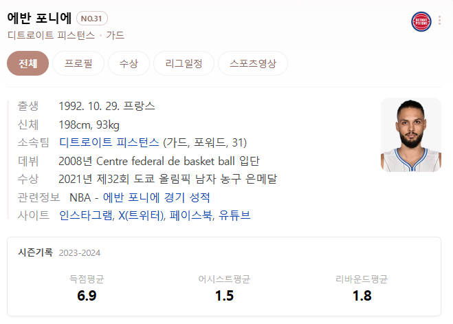 - Evan Fournier (뉴욕 닉스) : 에반 푸르니에는 뛰어난 3점슛 득점 능력을 갖고 있습니다.